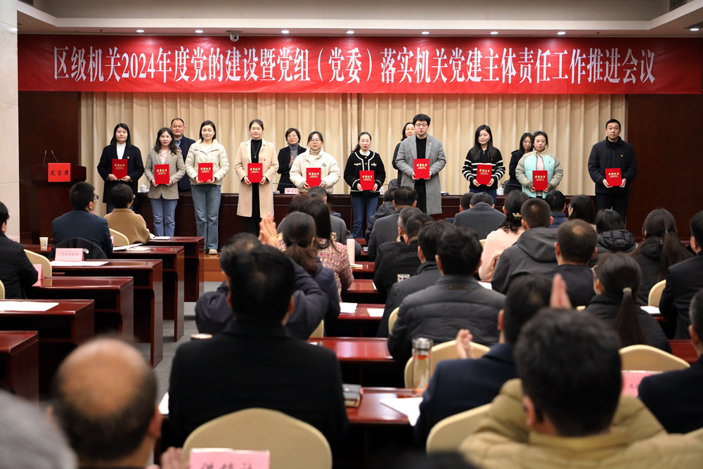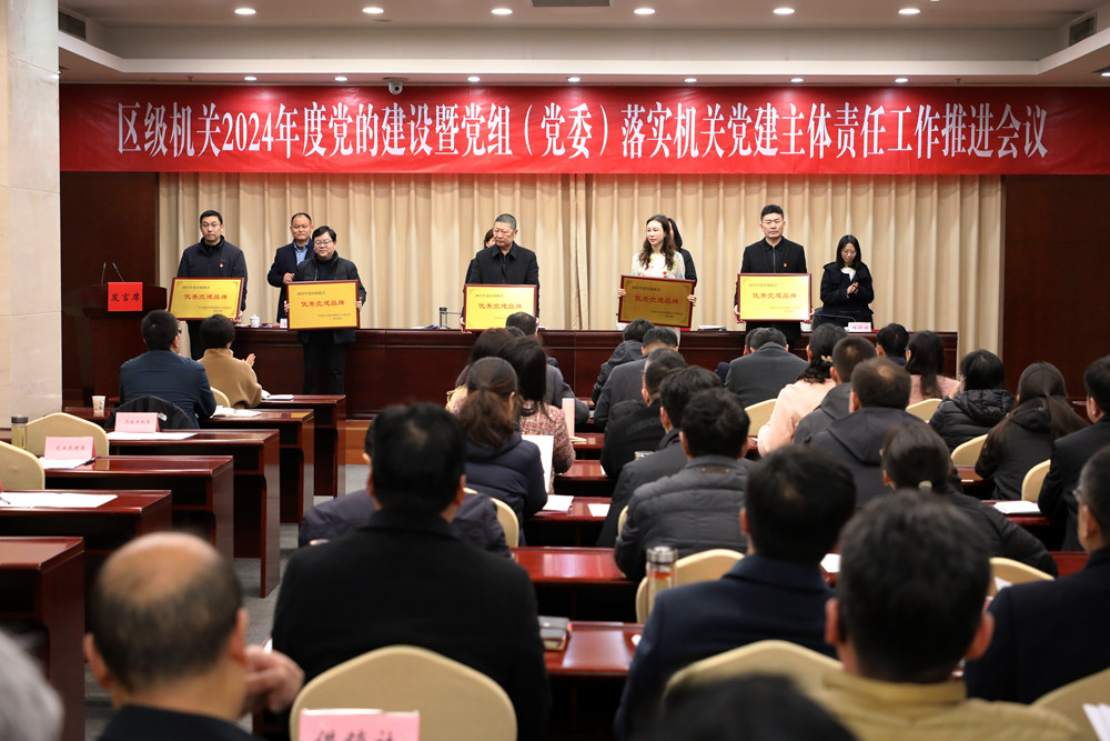 区级机关工委书记朱璋莹部署了2024年度重点任务,会议表彰了2023年度区级机关优秀党建品牌和优秀党务工作者,区人民法院、司法局等四家单位做了交流发言。