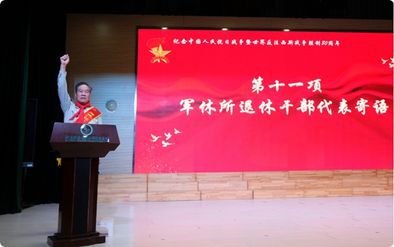 市军休所军休干部第二党支部书记赵继红同志深情朗诵《锈蚀的刀锋与不灭的星》,从“七七事变”开篇,到赵一曼遗书收尾,短短800字,却饱含着先烈们的无上信仰和惊天伟业,砥砺着后辈铭记历史、奋发自强。