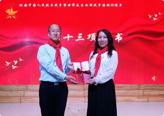 仪式过半,双方代表为新建中队辅导员颁发聘书并授予中队旗。