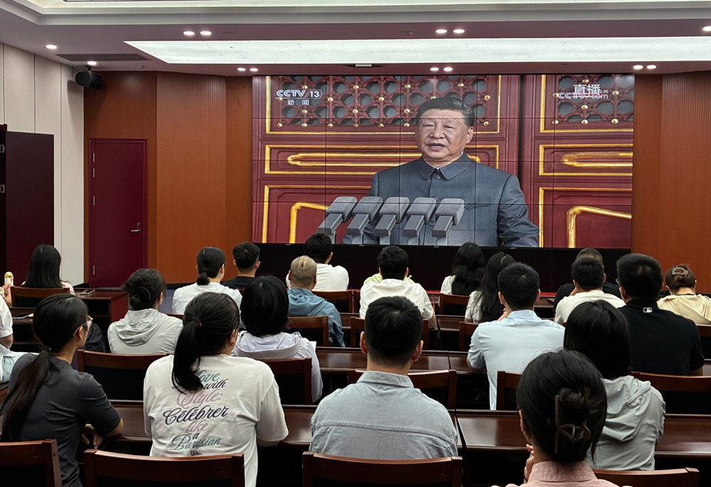 9月3日上午,“强国复兴有我・青年何为”主题活动在区文明实践中心会议室举行。机关青年理论学习小组成员及2024、2025年新发展党员参加活动,共同观看了阅兵式电视直播,并认真聆听习近平总书记的重要讲话。