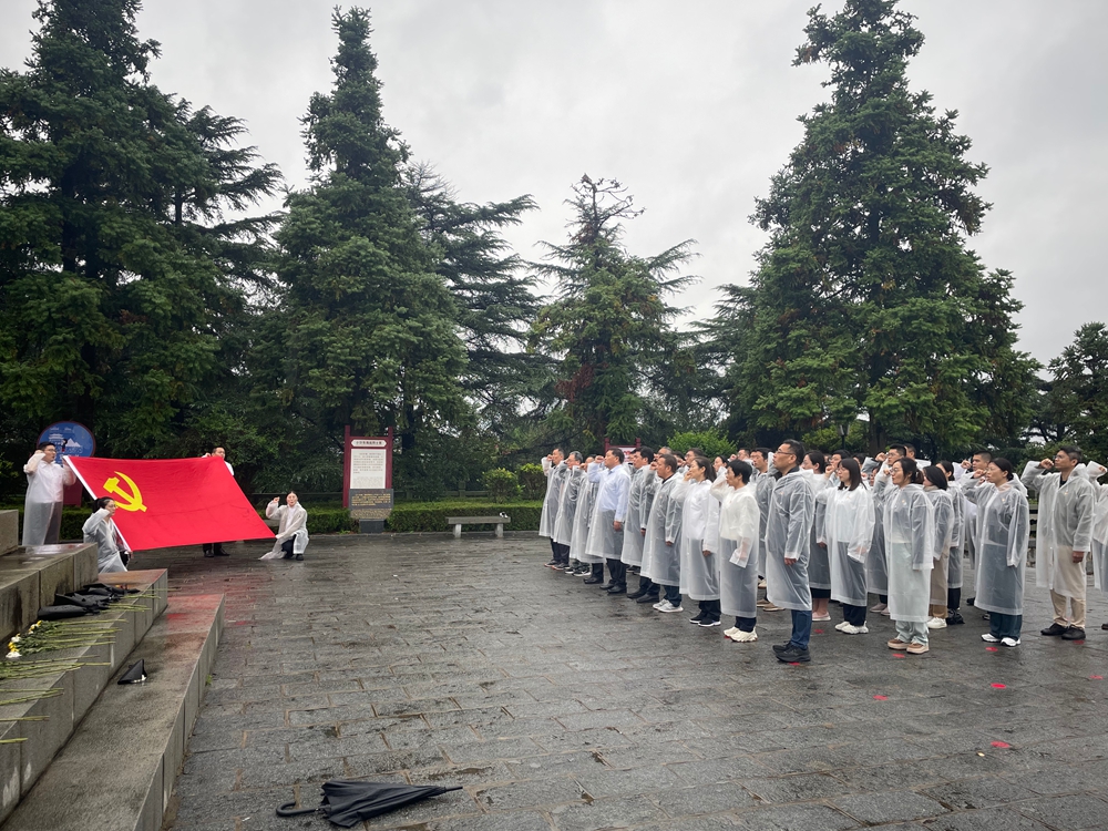 9月19日上午,全体学员冒雨赴抗日山烈士陵园开展现场教学。在庄严肃穆的氛围中,学员们向烈士冢敬献花篮、鞠躬默哀,深切缅怀革命先烈的丰功伟绩。面对鲜红党旗,大家重温入党誓词,用铿锵誓言表达“不忘初心、牢记使命”的坚定决心。随后,大家认真聆听现场微党课,参观革命烈士纪念馆,通过一件件珍贵实物、一幅幅历史图片,深刻感悟伟大抗战精神,接受了一次深刻的党性教育和思想洗礼。大家表示,要传承红色基因,赓续精神血脉,将学习成果转化为实干担当的强大动力。